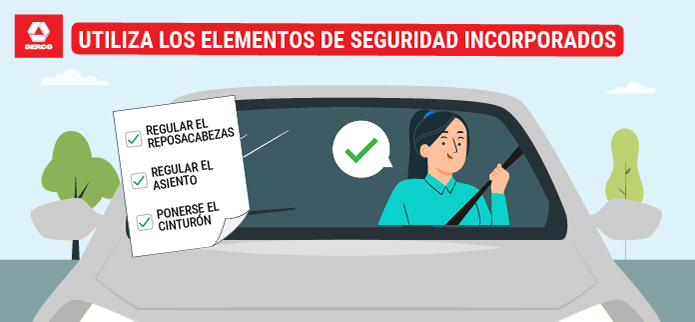 Asegúrate de usar el cinturón de seguridad y que tus pasajeros también lo hagan, en caso de vuelco reducen hasta un 77% la probabilidad de muerte. También emplea los reposacabezas correctamente, ya que en caso de accidente, ambos elementos pueden evitar lesiones y salvar la vida de quienes van contigo.